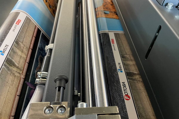 The AquaSeal SW3300 laminating system serves to facilitate the even and consistent liquid laminate coating of particularly large printed products. The permanent protective laminate is used in the roll-to-roll process for various rolled materials, such as PVC adhesive films, banners and HGV tarpaulins.